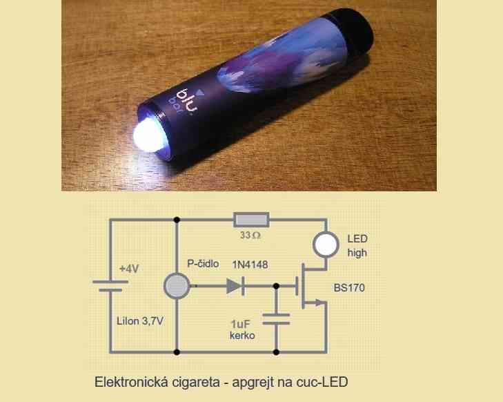 Po rozboru prvních e-cigaret byla tato koupena kvůli budoucímu využití senzoru + baterie. Kompaktnos a vhodné uspořádání vnitřku této e-cig však nakonec svedlo k přebastlení na další cucLED svítilnu.